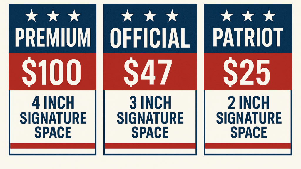 This historic card is a tribute to President Donald J. Trump, thanking him for his vision and dedication to saving our country. Your signature and contribution make you part of this record-breaking moment and demonstrate your support for America's future.